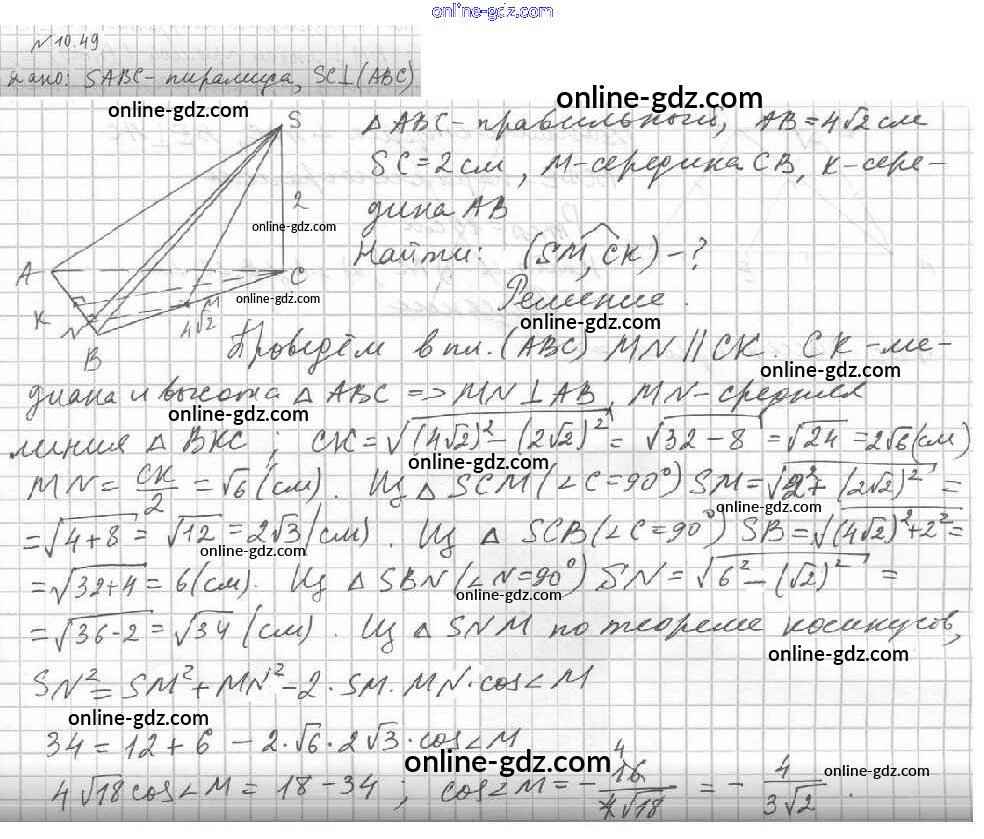 Готовые домашние задания по Геометрии за 10 класс Учебник Мерзляк, Номировский Алгоритм успеха Углубленный уровень 2021 - §10. Перпендикулярность прямой и плоскости 10.49