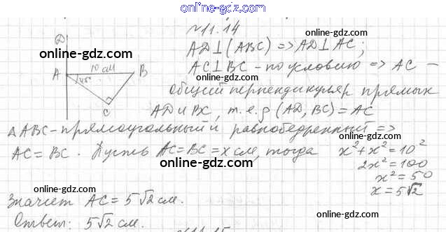 Готовые домашние задания по Геометрии за 10 класс Учебник Мерзляк, Номировский Алгоритм успеха Углубленный уровень 2021 - §11. Перпендикуляр и наклонная 11.14