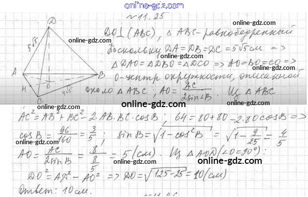 Готовые домашние задания по Геометрии за 10 класс Учебник Мерзляк, Номировский Алгоритм успеха Углубленный уровень 2021 - §11. Перпендикуляр и наклонная 11.25