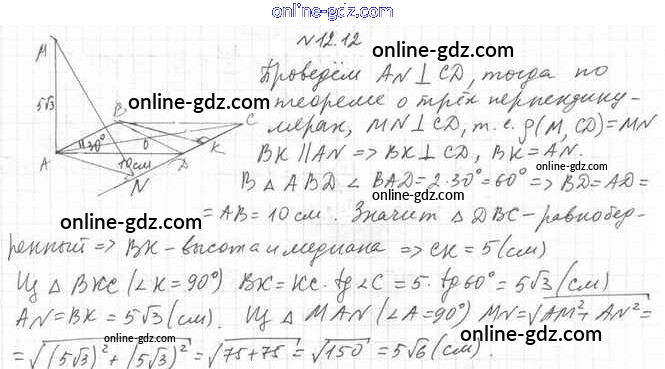 Готовые домашние задания по Геометрии за 10 класс Учебник Мерзляк, Номировский Алгоритм успеха Углубленный уровень 2021 - §12. Теорема о трёх перпендикулярах 12.12