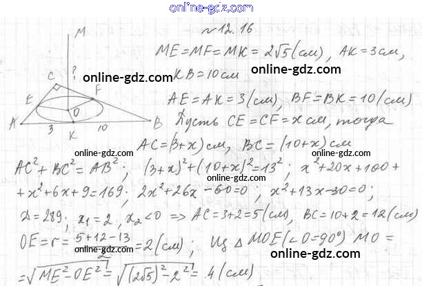 Готовые домашние задания по Геометрии за 10 класс Учебник Мерзляк, Номировский Алгоритм успеха Углубленный уровень 2021 - §12. Теорема о трёх перпендикулярах 12.16