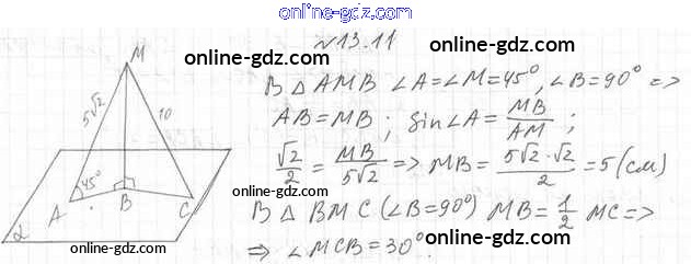 Готовые домашние задания по Геометрии за 10 класс Учебник Мерзляк, Номировский Алгоритм успеха Углубленный уровень 2021 - §13. Угол между прямой и плоскостью 13.11
