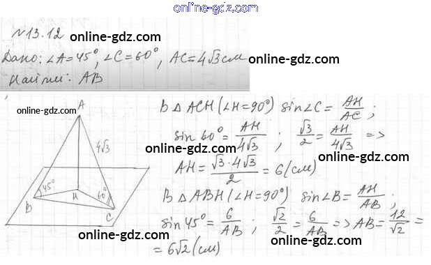 Готовые домашние задания по Геометрии за 10 класс Учебник Мерзляк, Номировский Алгоритм успеха Углубленный уровень 2021 - §13. Угол между прямой и плоскостью 13.12