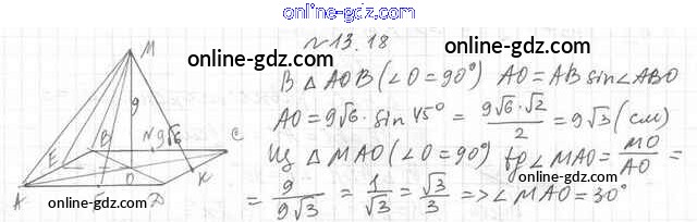 Готовые домашние задания по Геометрии за 10 класс Учебник Мерзляк, Номировский Алгоритм успеха Углубленный уровень 2021 - §13. Угол между прямой и плоскостью 13.18