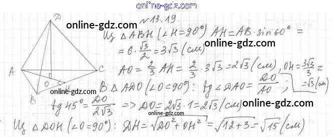 Готовые домашние задания по Геометрии за 10 класс Учебник Мерзляк, Номировский Алгоритм успеха Углубленный уровень 2021 - §13. Угол между прямой и плоскостью 13.19