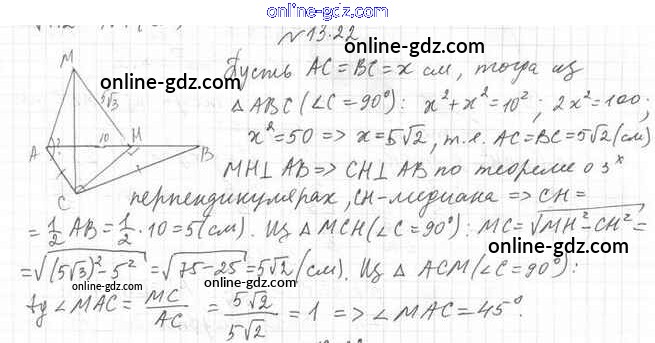 Готовые домашние задания по Геометрии за 10 класс Учебник Мерзляк, Номировский Алгоритм успеха Углубленный уровень 2021 - §13. Угол между прямой и плоскостью 13.22