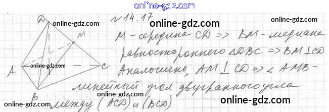 Готовые домашние задания по Геометрии за 10 класс Учебник Мерзляк, Номировский Алгоритм успеха Углубленный уровень 2021 - §14. Двугранный угол. Угол между двумя плоскостями 14.17