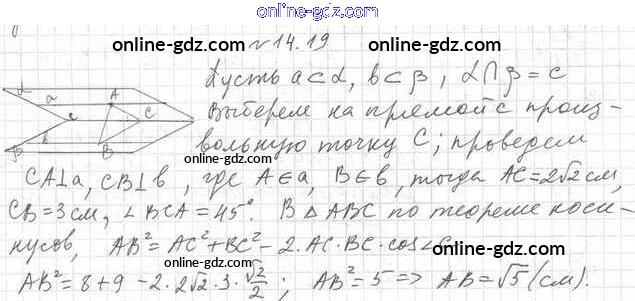 Готовые домашние задания по Геометрии за 10 класс Учебник Мерзляк, Номировский Алгоритм успеха Углубленный уровень 2021 - §14. Двугранный угол. Угол между двумя плоскостями 14.19