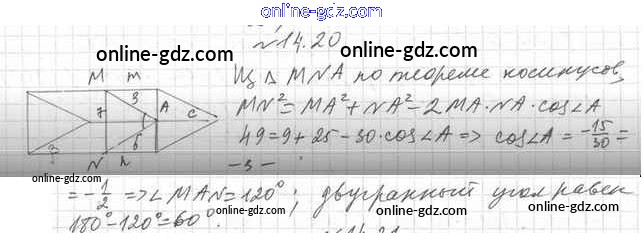 Готовые домашние задания по Геометрии за 10 класс Учебник Мерзляк, Номировский Алгоритм успеха Углубленный уровень 2021 - §14. Двугранный угол. Угол между двумя плоскостями 14.20