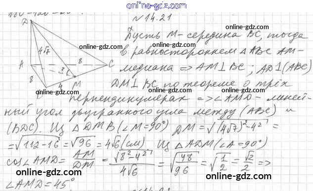 Готовые домашние задания по Геометрии за 10 класс Учебник Мерзляк, Номировский Алгоритм успеха Углубленный уровень 2021 - §14. Двугранный угол. Угол между двумя плоскостями 14.21