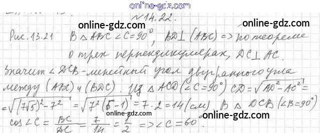 Готовые домашние задания по Геометрии за 10 класс Учебник Мерзляк, Номировский Алгоритм успеха Углубленный уровень 2021 - §14. Двугранный угол. Угол между двумя плоскостями 14.22