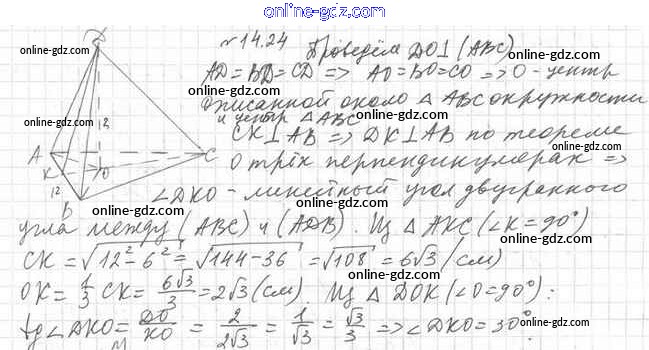 Готовые домашние задания по Геометрии за 10 класс Учебник Мерзляк, Номировский Алгоритм успеха Углубленный уровень 2021 - §14. Двугранный угол. Угол между двумя плоскостями 14.24
