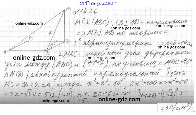 Готовые домашние задания по Геометрии за 10 класс Учебник Мерзляк, Номировский Алгоритм успеха Углубленный уровень 2021 - §14. Двугранный угол. Угол между двумя плоскостями 14.26