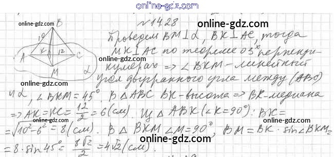 Готовые домашние задания по Геометрии за 10 класс Учебник Мерзляк, Номировский Алгоритм успеха Углубленный уровень 2021 - §14. Двугранный угол. Угол между двумя плоскостями 14.28