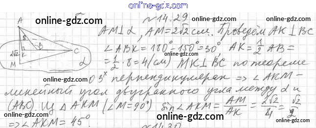 Готовые домашние задания по Геометрии за 10 класс Учебник Мерзляк, Номировский Алгоритм успеха Углубленный уровень 2021 - §14. Двугранный угол. Угол между двумя плоскостями 14.29