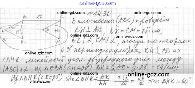 Готовые домашние задания по Геометрии за 10 класс Учебник Мерзляк, Номировский Алгоритм успеха Углубленный уровень 2021 - §14. Двугранный угол. Угол между двумя плоскостями 14.30