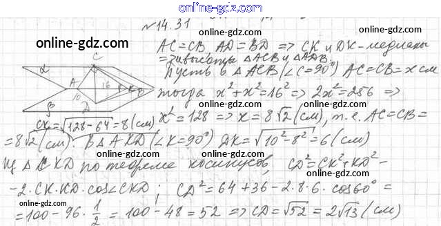 Готовые домашние задания по Геометрии за 10 класс Учебник Мерзляк, Номировский Алгоритм успеха Углубленный уровень 2021 - §14. Двугранный угол. Угол между двумя плоскостями 14.31