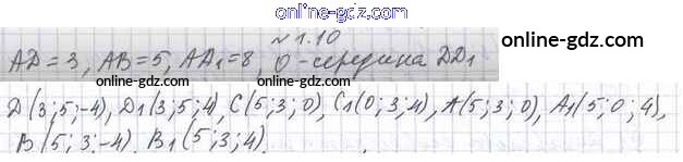 Готовые домашние задания по Геометрии за 11 класс Учебник Мерзляк, Номировский Алгоритм успеха Базовый уровень 2019 - §1. Декартовы координаты точки в пространстве 1.10