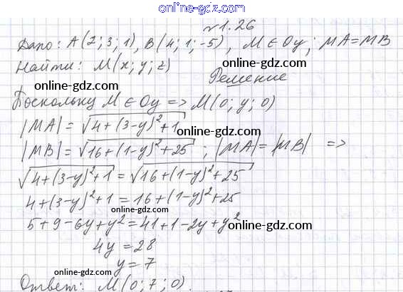 Готовые домашние задания по Геометрии за 11 класс Учебник Мерзляк, Номировский Алгоритм успеха Базовый уровень 2019 - §1. Декартовы координаты точки в пространстве 1.26