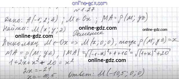 Готовые домашние задания по Геометрии за 11 класс Учебник Мерзляк, Номировский Алгоритм успеха Базовый уровень 2019 - §1. Декартовы координаты точки в пространстве 1.27