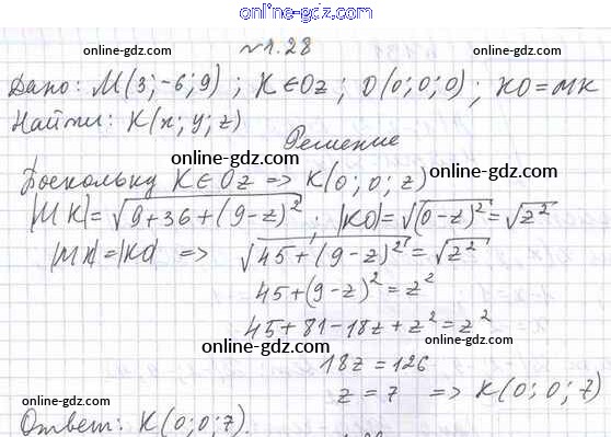 Готовые домашние задания по Геометрии за 11 класс Учебник Мерзляк, Номировский Алгоритм успеха Базовый уровень 2019 - §1. Декартовы координаты точки в пространстве 1.28