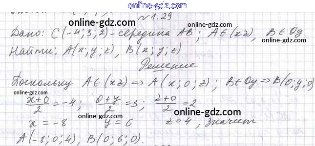 Готовые домашние задания по Геометрии за 11 класс Учебник Мерзляк, Номировский Алгоритм успеха Базовый уровень 2019 - §1. Декартовы координаты точки в пространстве 1.29