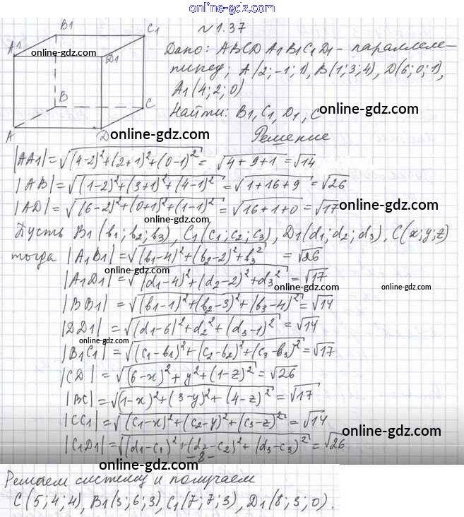 Готовые домашние задания по Геометрии за 11 класс Учебник Мерзляк, Номировский Алгоритм успеха Базовый уровень 2019 - §1. Декартовы координаты точки в пространстве 1.37