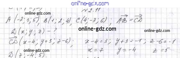 Готовые домашние задания по Геометрии за 11 класс Учебник Мерзляк, Номировский Алгоритм успеха Базовый уровень 2019 - §2. Векторы в пространстве 2.11