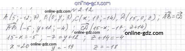 Готовые домашние задания по Геометрии за 11 класс Учебник Мерзляк, Номировский Алгоритм успеха Базовый уровень 2019 - §2. Векторы в пространстве 2.12