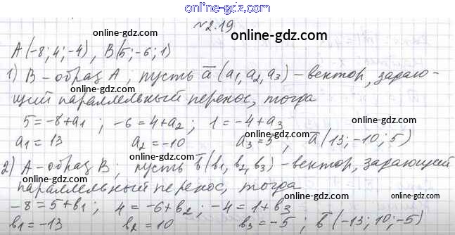 Готовые домашние задания по Геометрии за 11 класс Учебник Мерзляк, Номировский Алгоритм успеха Базовый уровень 2019 - §2. Векторы в пространстве 2.19