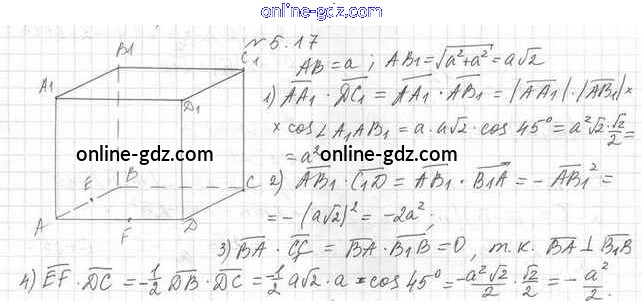 Готовые домашние задания по Геометрии за 11 класс Учебник Мерзляк, Номировский Алгоритм успеха Базовый уровень 2019 - §5. Скалярное произведение векторов 5.17