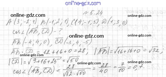 Готовые домашние задания по Геометрии за 11 класс Учебник Мерзляк, Номировский Алгоритм успеха Базовый уровень 2019 - §5. Скалярное произведение векторов 5.24
