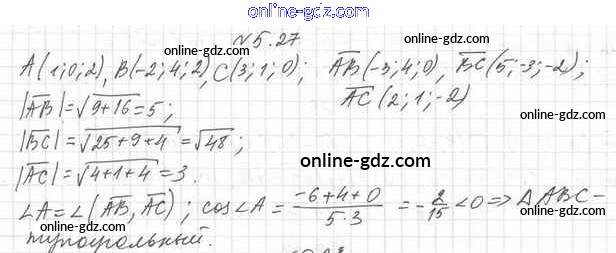 Готовые домашние задания по Геометрии за 11 класс Учебник Мерзляк, Номировский Алгоритм успеха Базовый уровень 2019 - §5. Скалярное произведение векторов 5.27