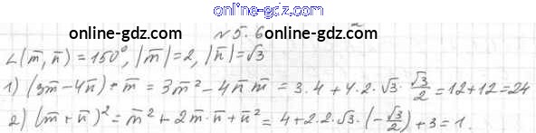 Готовые домашние задания по Геометрии за 11 класс Учебник Мерзляк, Номировский Алгоритм успеха Базовый уровень 2019 - §5. Скалярное произведение векторов 5.6