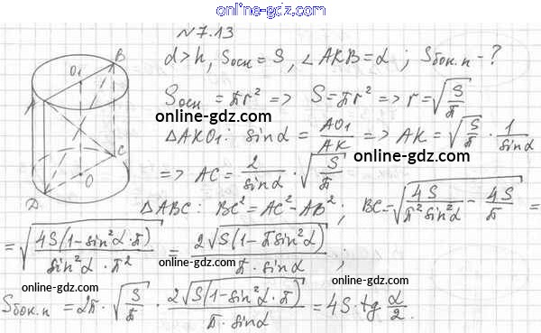 Готовые домашние задания по Геометрии за 11 класс Учебник Мерзляк, Номировский Алгоритм успеха Базовый уровень 2019 - §7. Цилиндр 7.13