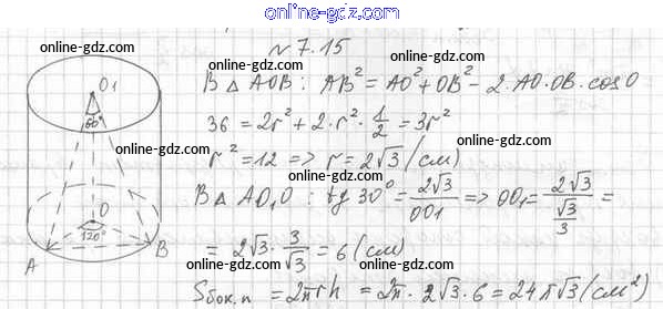 Готовые домашние задания по Геометрии за 11 класс Учебник Мерзляк, Номировский Алгоритм успеха Базовый уровень 2019 - §7. Цилиндр 7.15