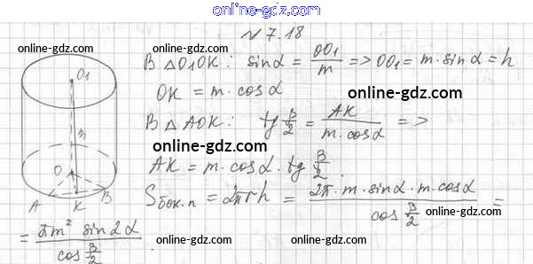 Готовые домашние задания по Геометрии за 11 класс Учебник Мерзляк, Номировский Алгоритм успеха Базовый уровень 2019 - §7. Цилиндр 7.18