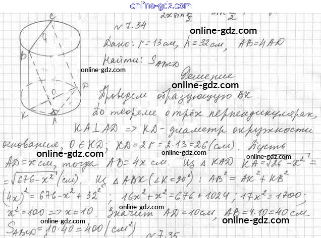 Готовые домашние задания по Геометрии за 11 класс Учебник Мерзляк, Номировский Алгоритм успеха Базовый уровень 2019 - §7. Цилиндр 7.34