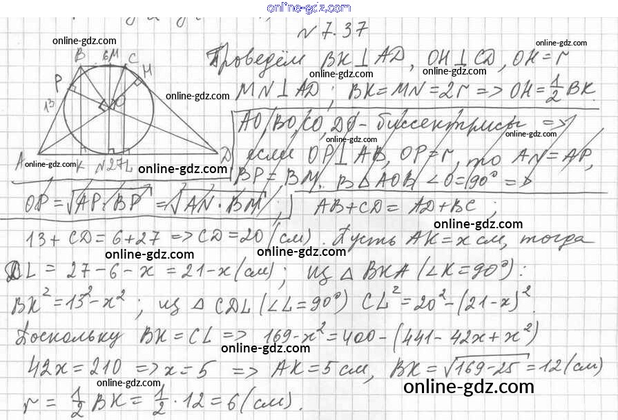 Готовые домашние задания по Геометрии за 11 класс Учебник Мерзляк, Номировский Алгоритм успеха Базовый уровень 2019 - §7. Цилиндр 7.37
