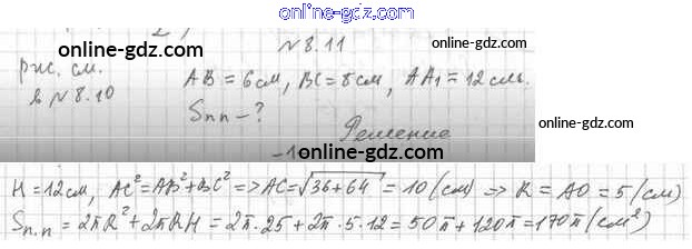 Готовые домашние задания по Геометрии за 11 класс Учебник Мерзляк, Номировский Алгоритм успеха Базовый уровень 2019 - §8. Комбинации цилиндра и призмы 8.11