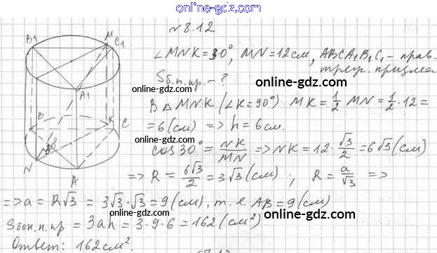 Готовые домашние задания по Геометрии за 11 класс Учебник Мерзляк, Номировский Алгоритм успеха Базовый уровень 2019 - §8. Комбинации цилиндра и призмы 8.12