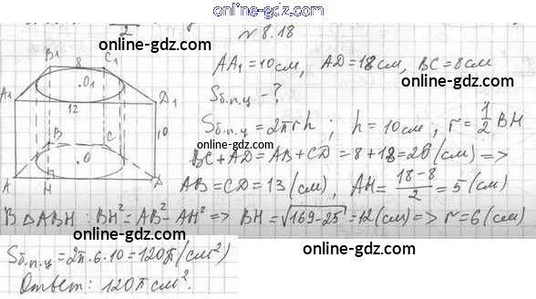 Готовые домашние задания по Геометрии за 11 класс Учебник Мерзляк, Номировский Алгоритм успеха Базовый уровень 2019 - §8. Комбинации цилиндра и призмы 8.18