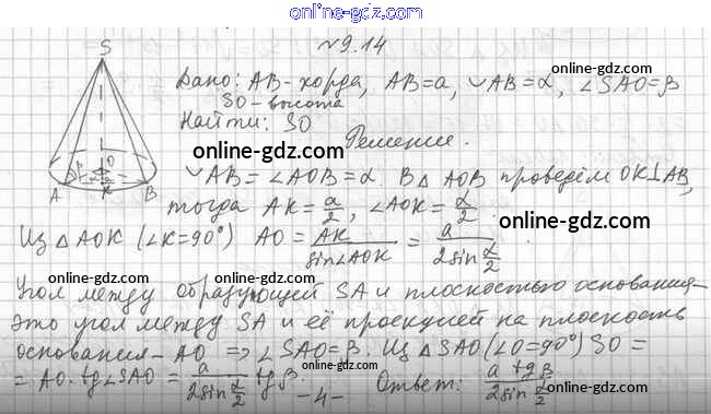 Готовые домашние задания по Геометрии за 11 класс Учебник Мерзляк, Номировский Алгоритм успеха Базовый уровень 2019 - §9. Конус 9.14