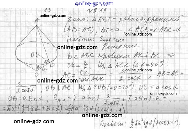 Готовые домашние задания по Геометрии за 11 класс Учебник Мерзляк, Номировский Алгоритм успеха Базовый уровень 2019 - §9. Конус 9.19
