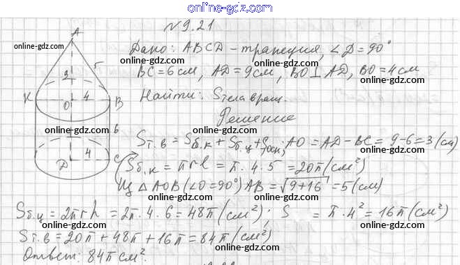 Готовые домашние задания по Геометрии за 11 класс Учебник Мерзляк, Номировский Алгоритм успеха Базовый уровень 2019 - §9. Конус 9.21