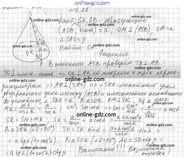 Готовые домашние задания по Геометрии за 11 класс Учебник Мерзляк, Номировский Алгоритм успеха Базовый уровень 2019 - §9. Конус 9.28