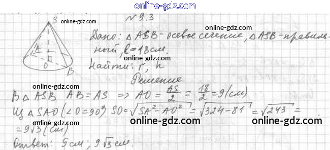 Готовые домашние задания по Геометрии за 11 класс Учебник Мерзляк, Номировский Алгоритм успеха Базовый уровень 2019 - §9. Конус 9.3