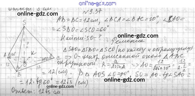 Готовые домашние задания по Геометрии за 11 класс Учебник Мерзляк, Номировский Алгоритм успеха Базовый уровень 2019 - §9. Конус 9.37