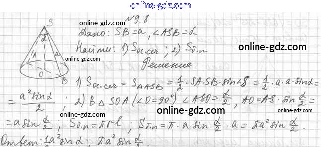 Готовые домашние задания по Геометрии за 11 класс Учебник Мерзляк, Номировский Алгоритм успеха Базовый уровень 2019 - §9. Конус 9.8