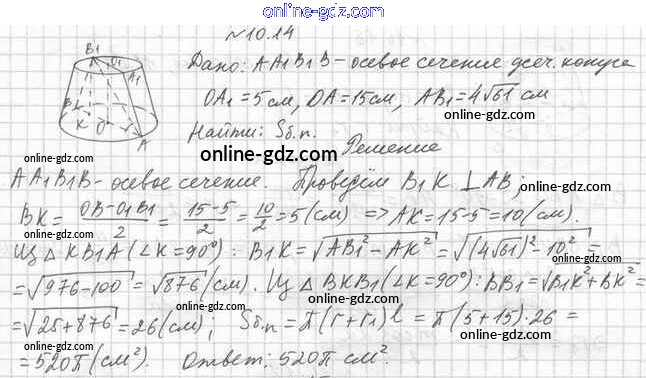 Готовые домашние задания по Геометрии за 11 класс Учебник Мерзляк, Номировский Алгоритм успеха Базовый уровень 2019 - §10. Усечённый конус 10.14